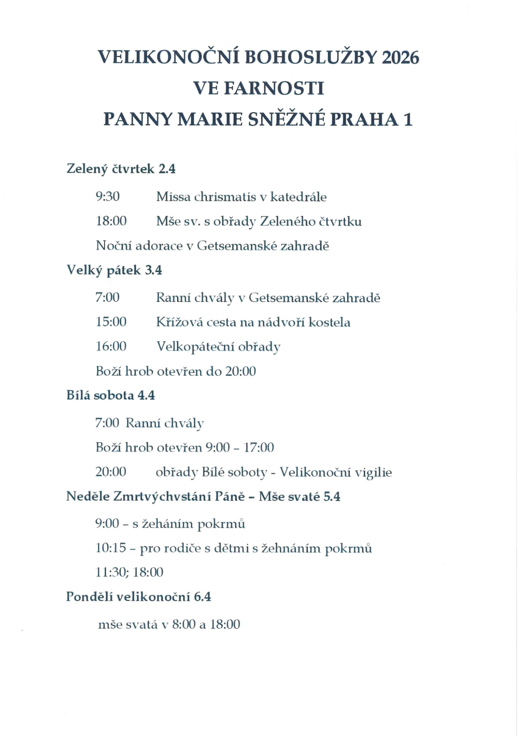 - Na celonoční adoraci v Getsemanské zahradě ze čtvrtka na pátek a ke službě na Velký pátek od 9 – 15 hodin se můžete závazně přihlásit v sakristii